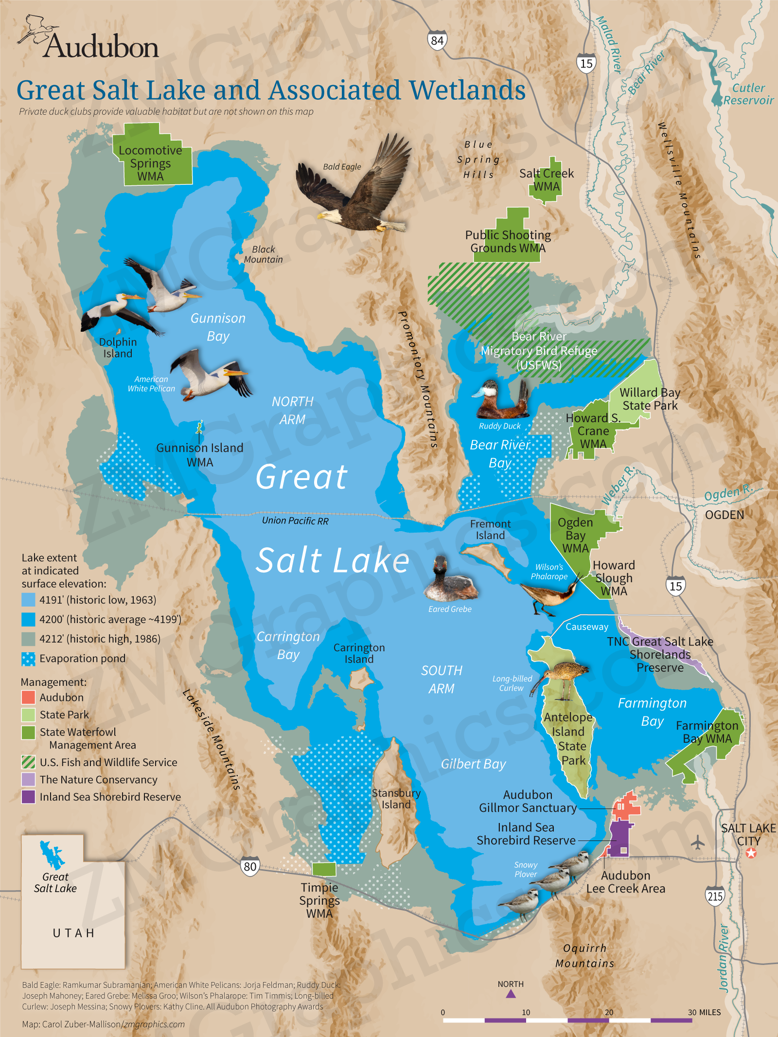 a few locations brought in from Google Earth Pro; various boundaries and labeling hand-drawn in Adobe Illustrator; and dressed up with some Audubon bird photos edited in Photoshop.